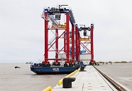 In Rstock, Germany, Liebherr Container Cranes is putting the final touches on heir first Ship-to-Shore (STS) crane for the port of Bronka. The first phase f the port will be equipped with four ship-to-shore cranes with twin-lift preader, a capacity of 65 tonnes and 51m outreach. They will be able to handle ,100 TEU capacity Post-Panamax Plus container vessels and up to 18 container ows.