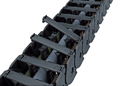 The space-saving design of the TKK39 impresses with, among other things, its installation height of only 142 mm – in comparison to alternative solutions, Tsubaki Kabelschlepp was able to reduce the installation height by 65 %. The energy chain can be used when both self-supported and gliding. It supports speeds of up to 3 m/s and accelerations of 9 m/s2. Short steel connecting elements allow for swift and easy assembly – they are directly bolted onto the console or support. The chain links are made entirely of plastic, whereby Tsubaki Kabelschlepp also offers hybrid chains with aluminum stays and steel chains as an alternative to this particular weight-optimized version.