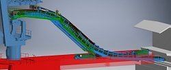 The DSI Sandwich high angle conveyor will transfer urea and amidas prills at a rate of 600 t/h at a 40° angle. The material will be transferred from the tripped dock conveyor and elevated to the shiploader boom conveyor. The sandwich conveyor discharge is centered on the bridge rotation axis of the boom, allowing the boom to rotate freely. DSI was awarded supply of the sandwich conveyor by Bedeschi, who was awarded the contract for the supply of the ship loader for the plant in January 2017.
